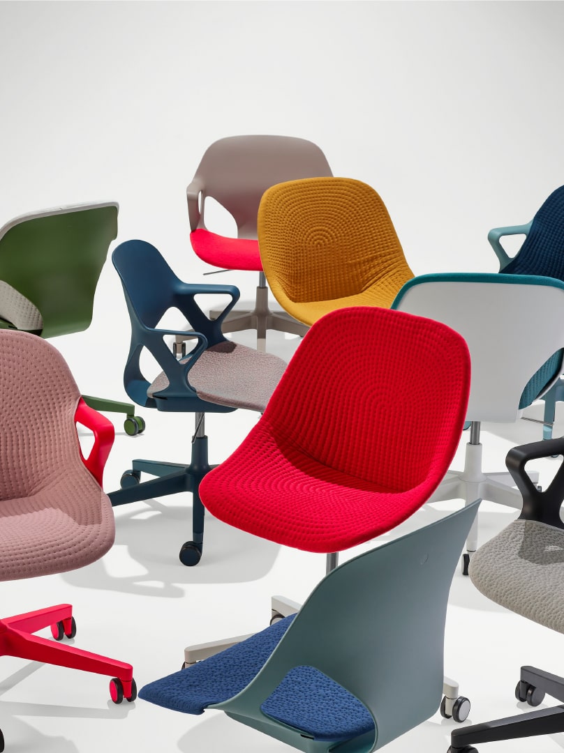 Offrez de la couleur à votre bureau La coque et le piètement du Zeph sont proposés en huit couleurs pour s’adapter à tous les espaces et exprimer votre style. Le modèle réintroduit aussi le look monochrome, inauguré sur le siège Cosm.